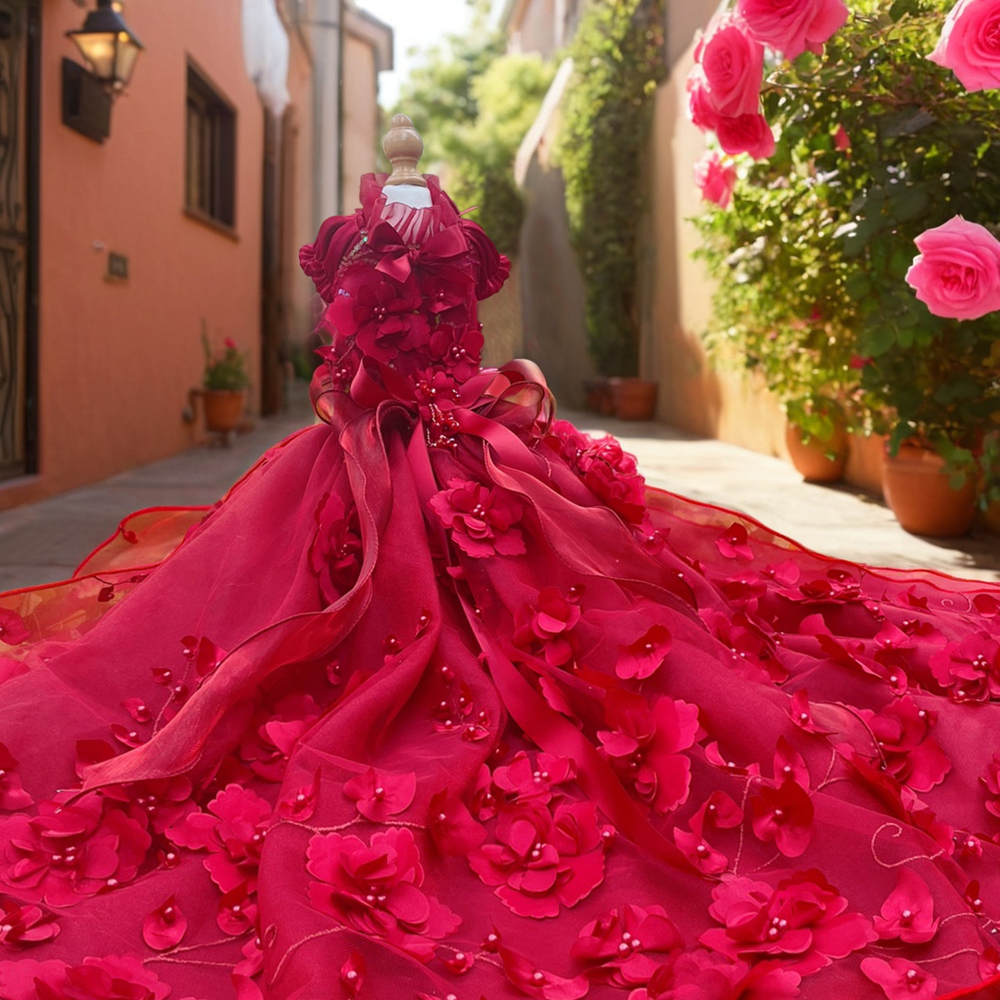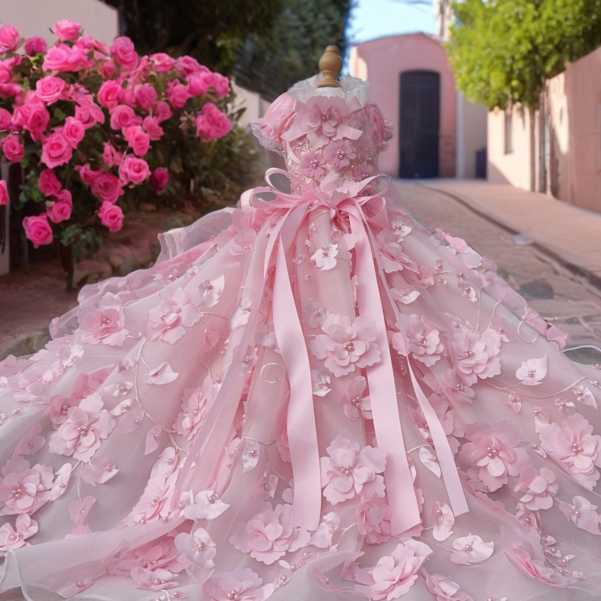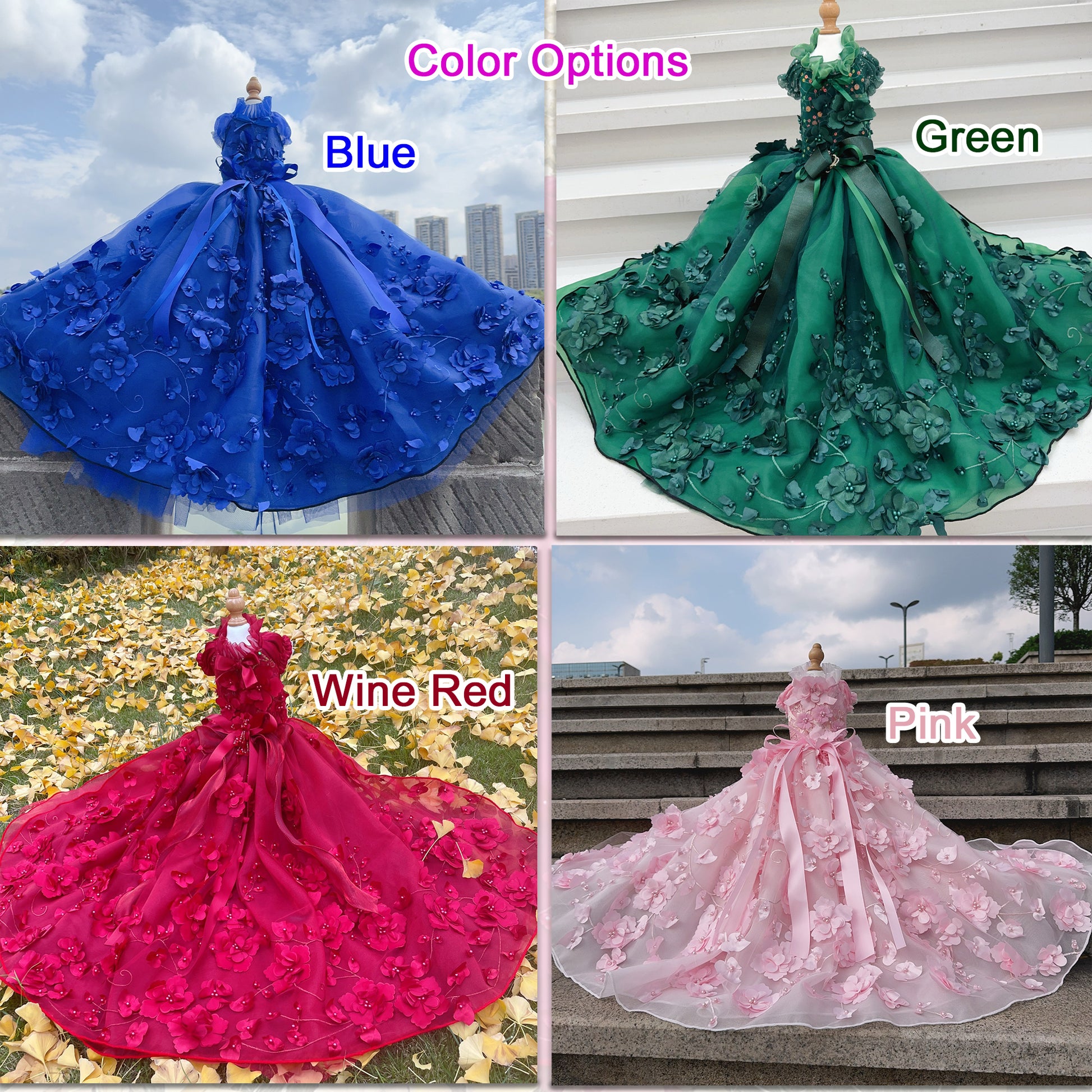 - Stunning Embellishments: The 3D flower decorations, with delicate textures and vibrant colors, add a touch of springtime magic. The elegant bow, made from premium organza, shines with a graceful luster.