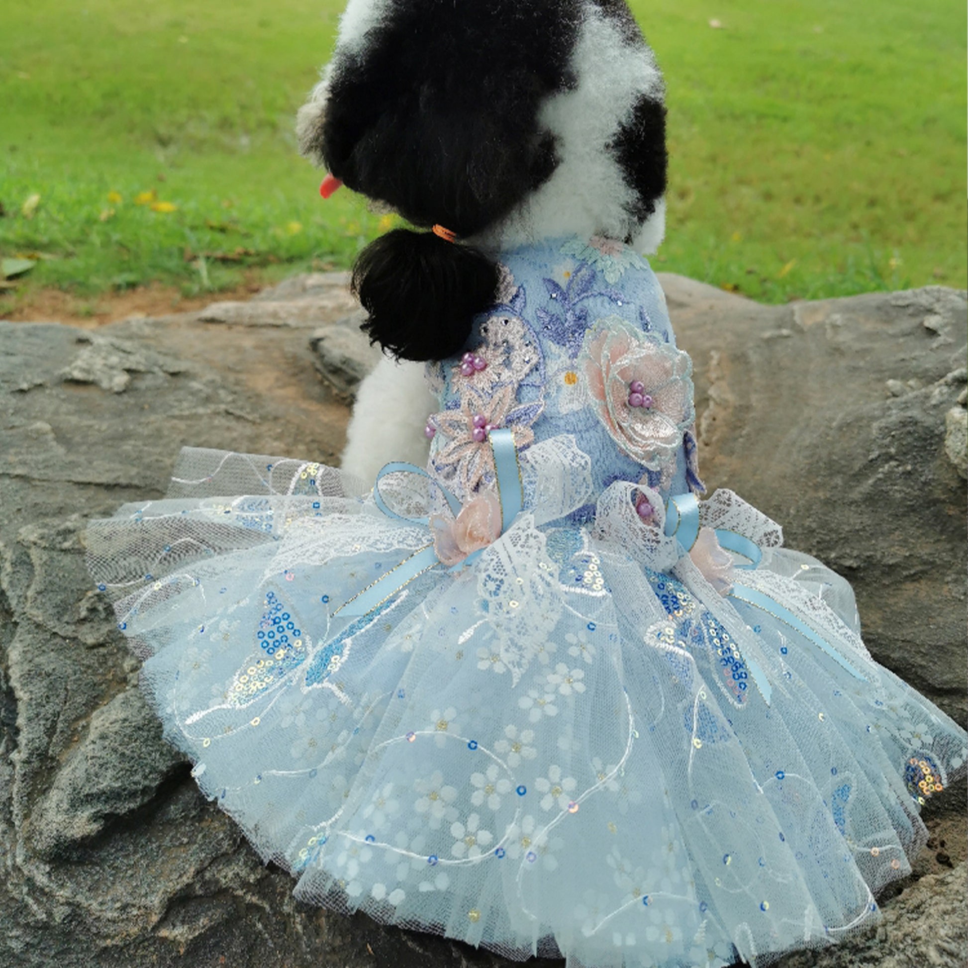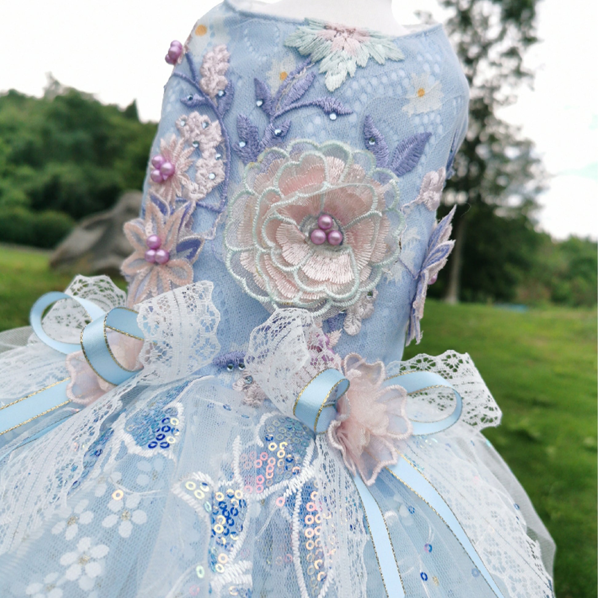 Blue Daisy Sequin Trailing Exquisite Wedding Dress for Dogs