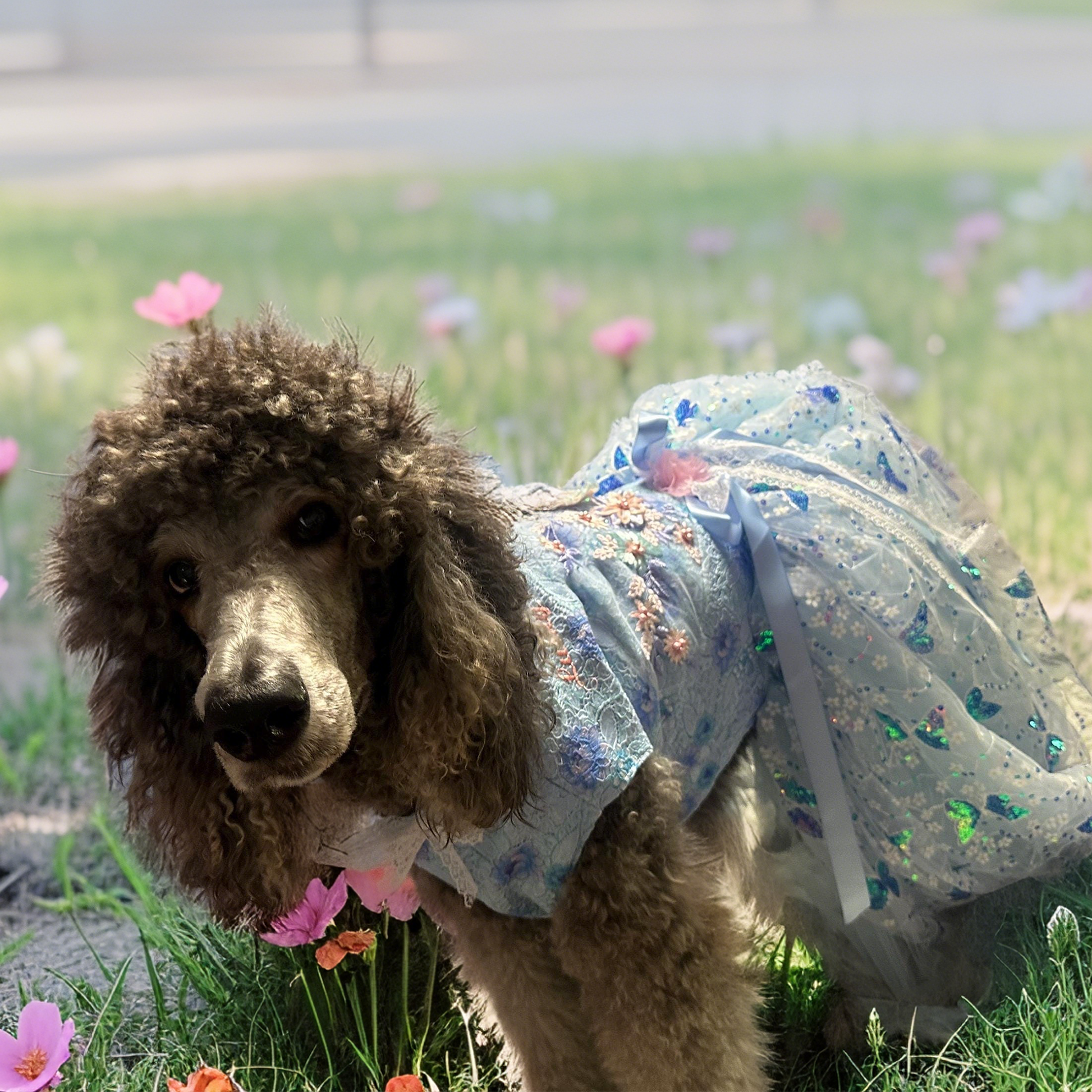 Most amazing dress ever! Our poodle Lucky looked stunning on our wedding day! She got endless compliments! The quality is outstanding! The embroidery of her name was the perfect touch! Thank you for making our day magical by helping Lucky look like the princess she is!