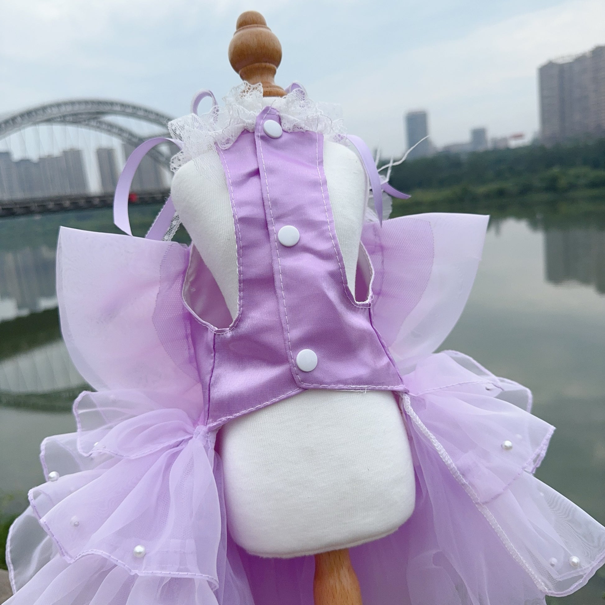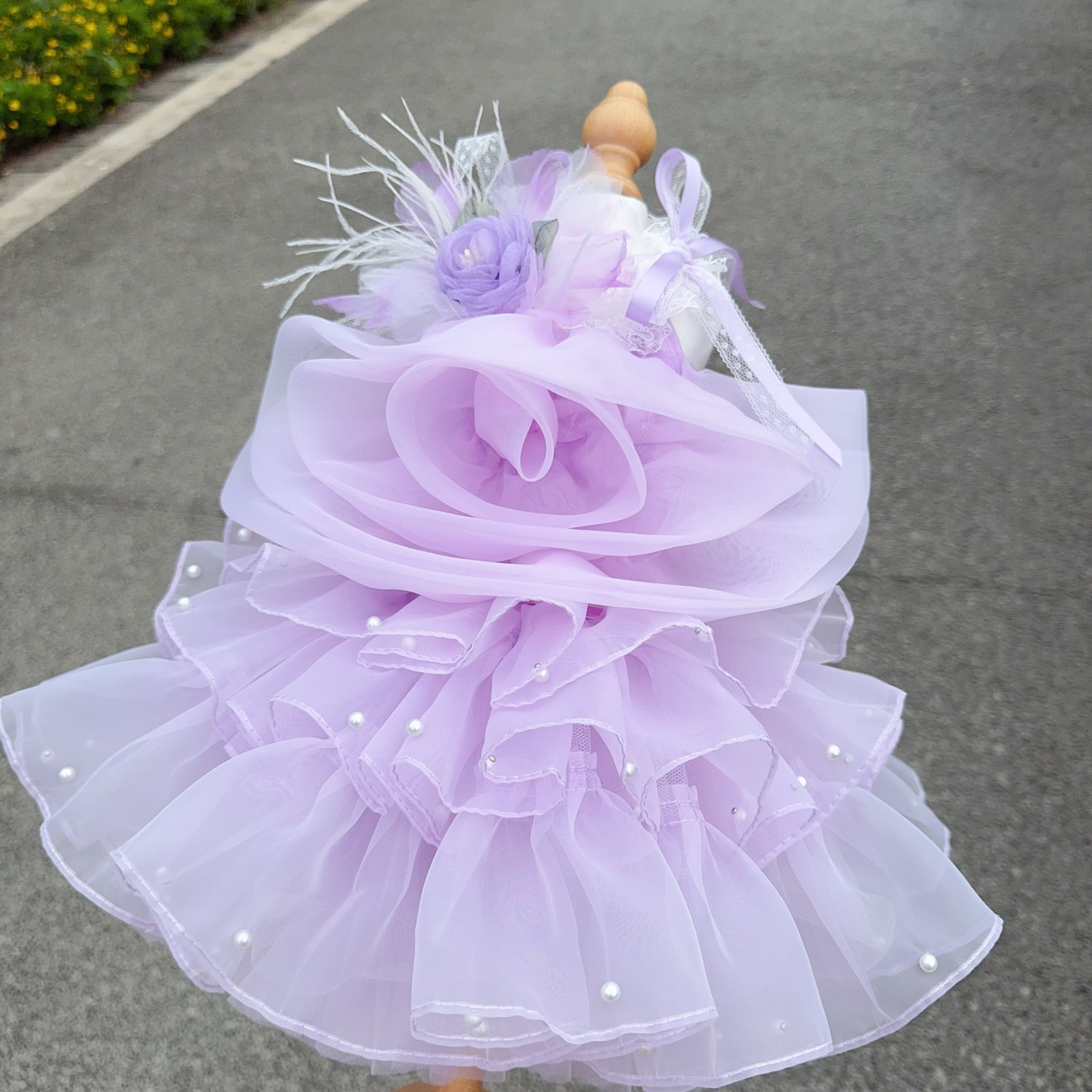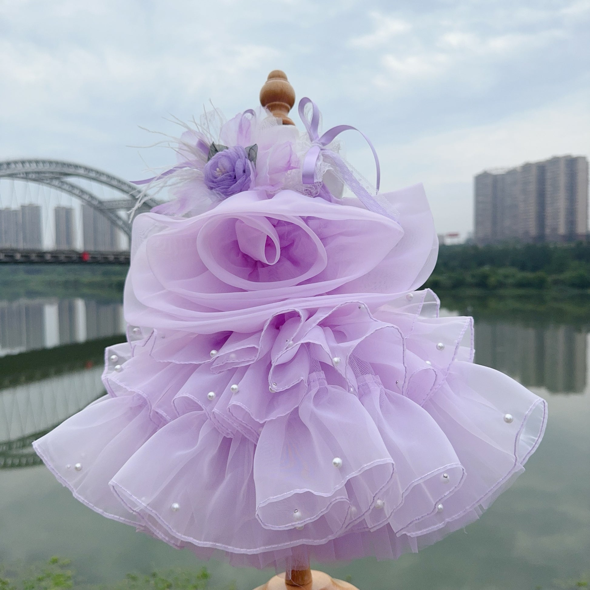 Violet Flower Pearl Dress for Dogs/Cats - Removable Dress