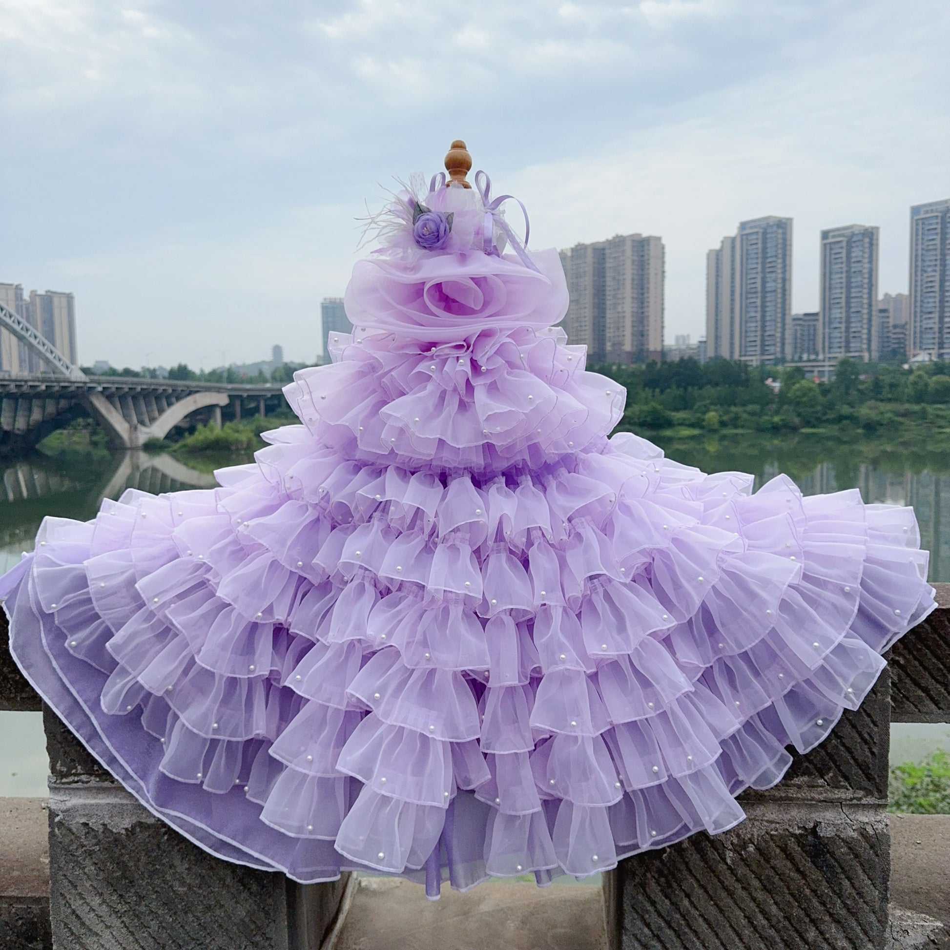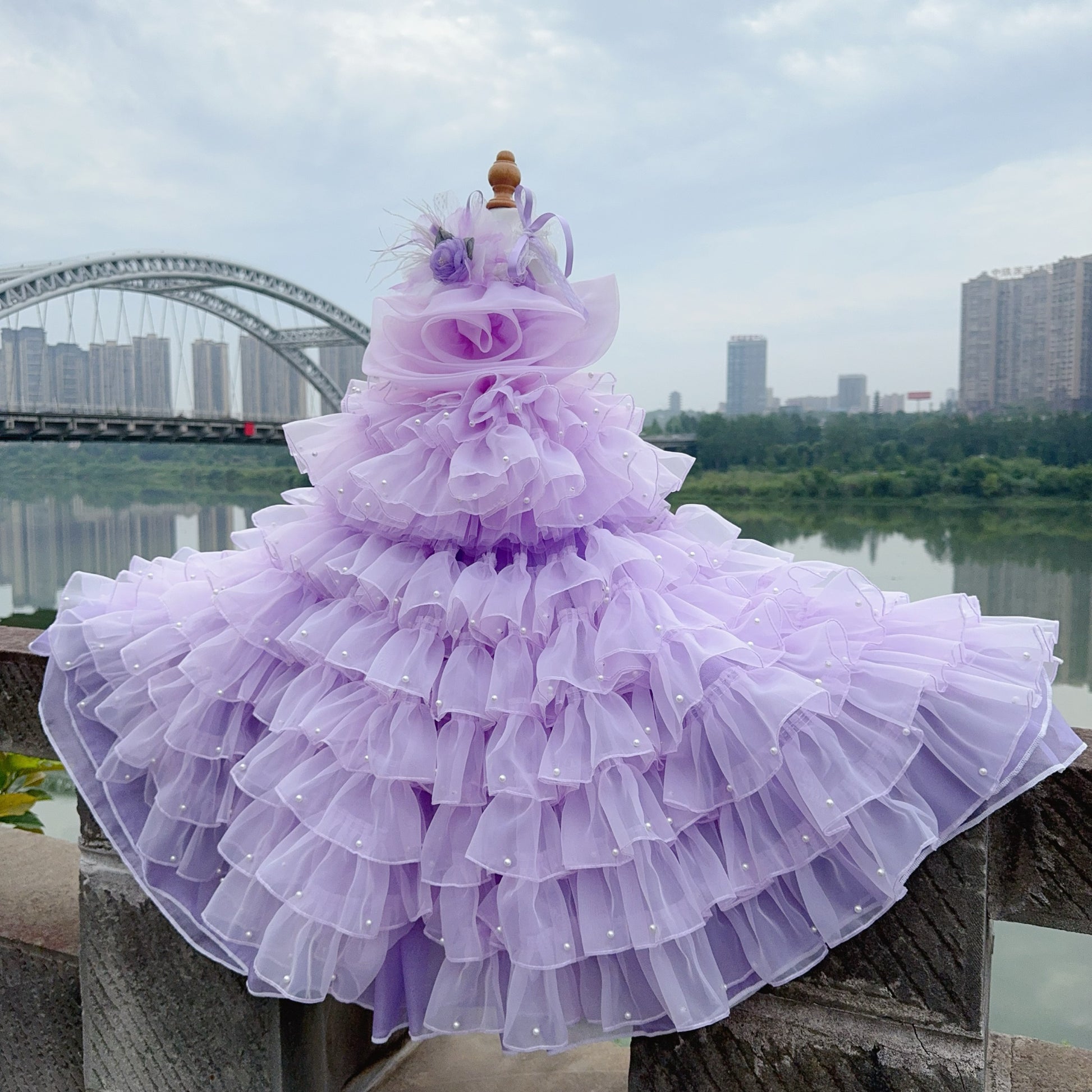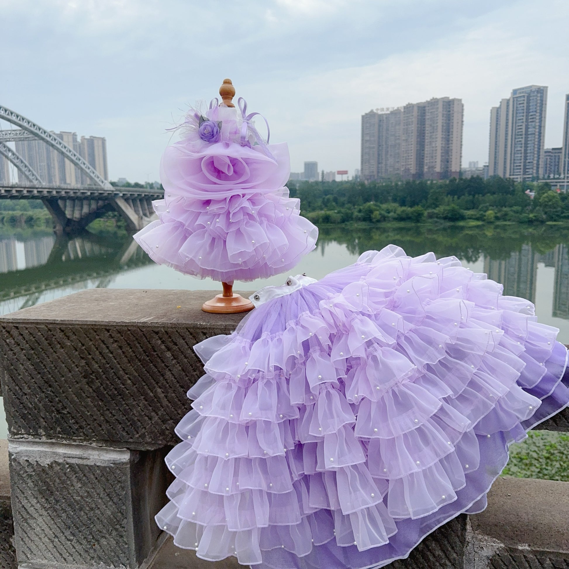 Violet Flower Pearl Dress for Dogs/Cats - Removable Dress