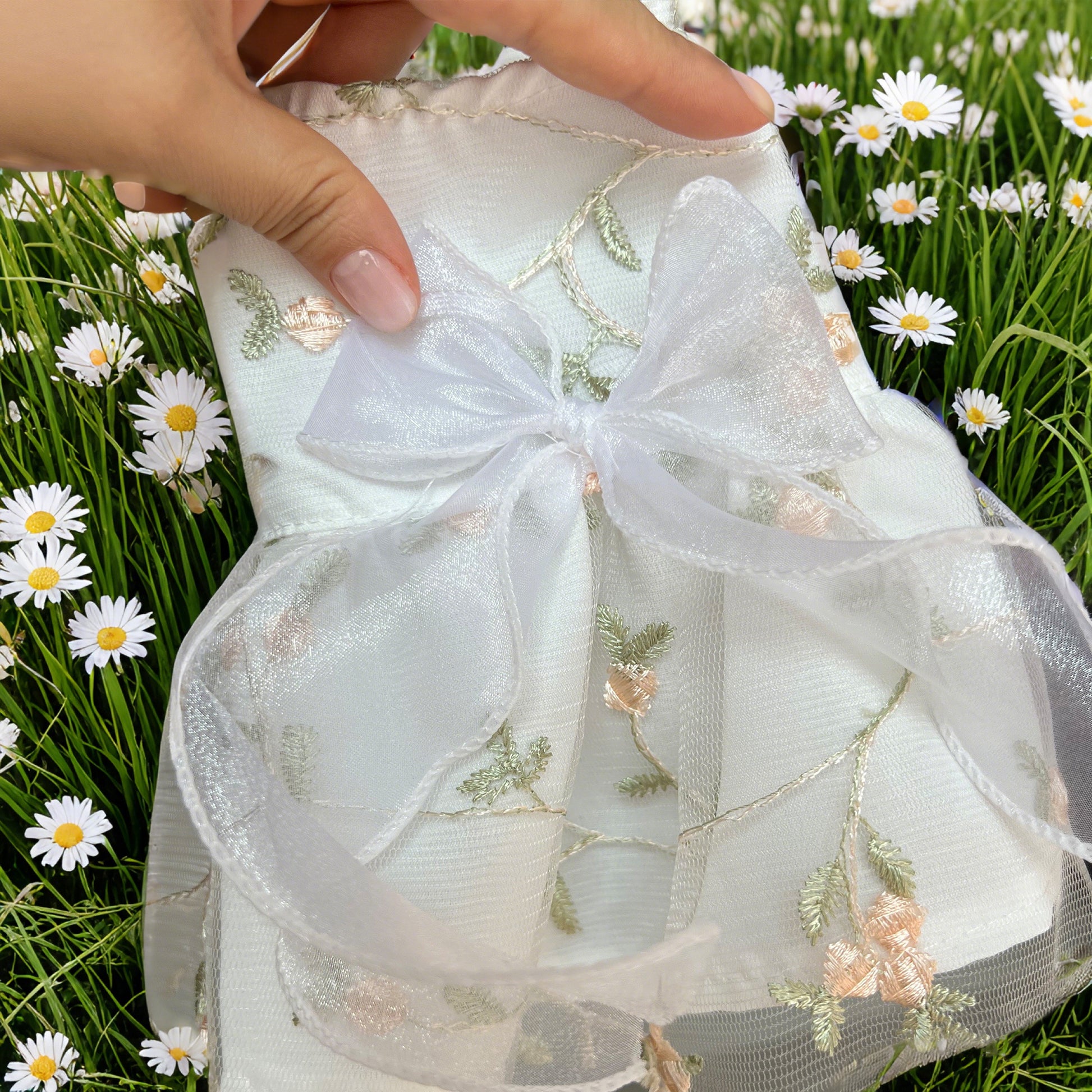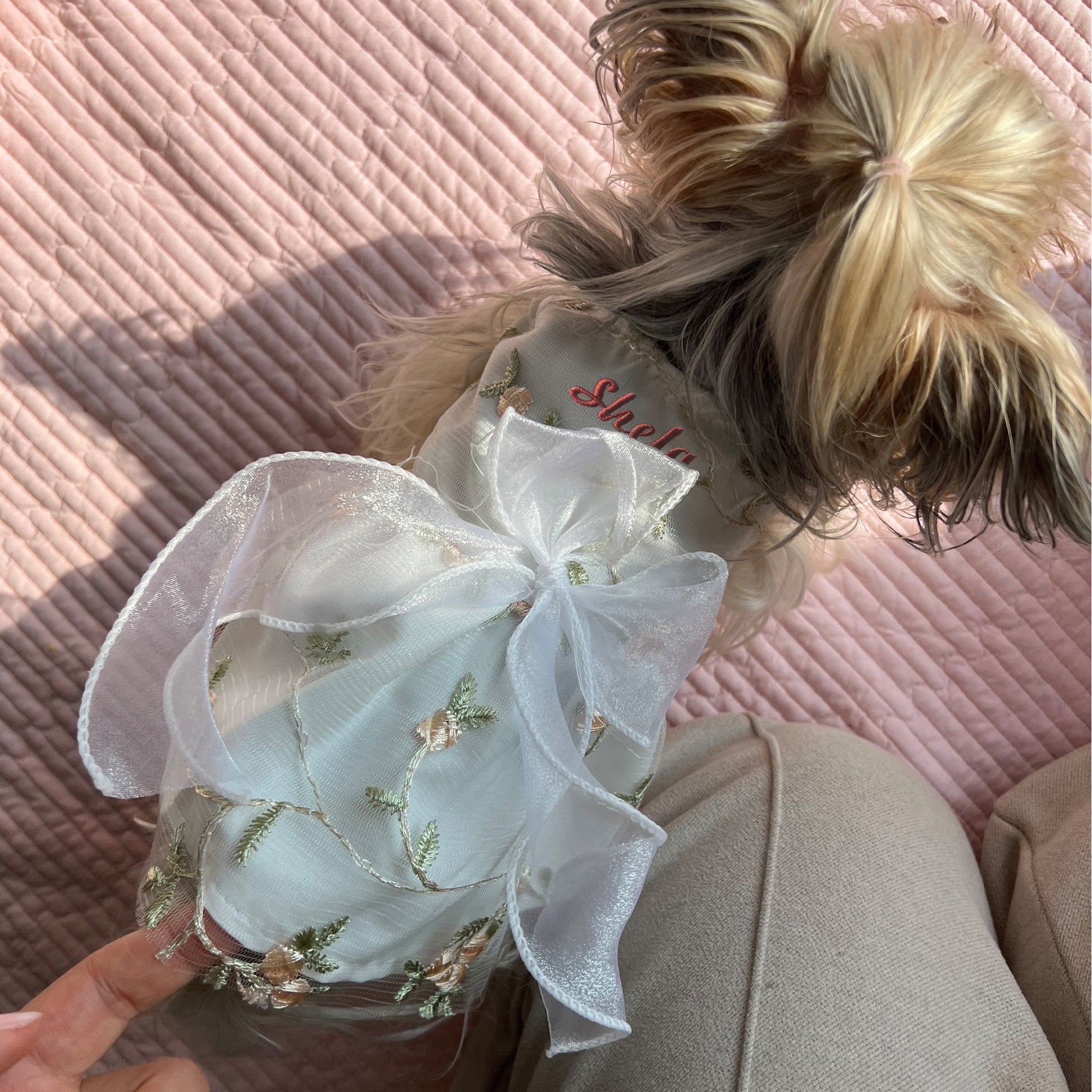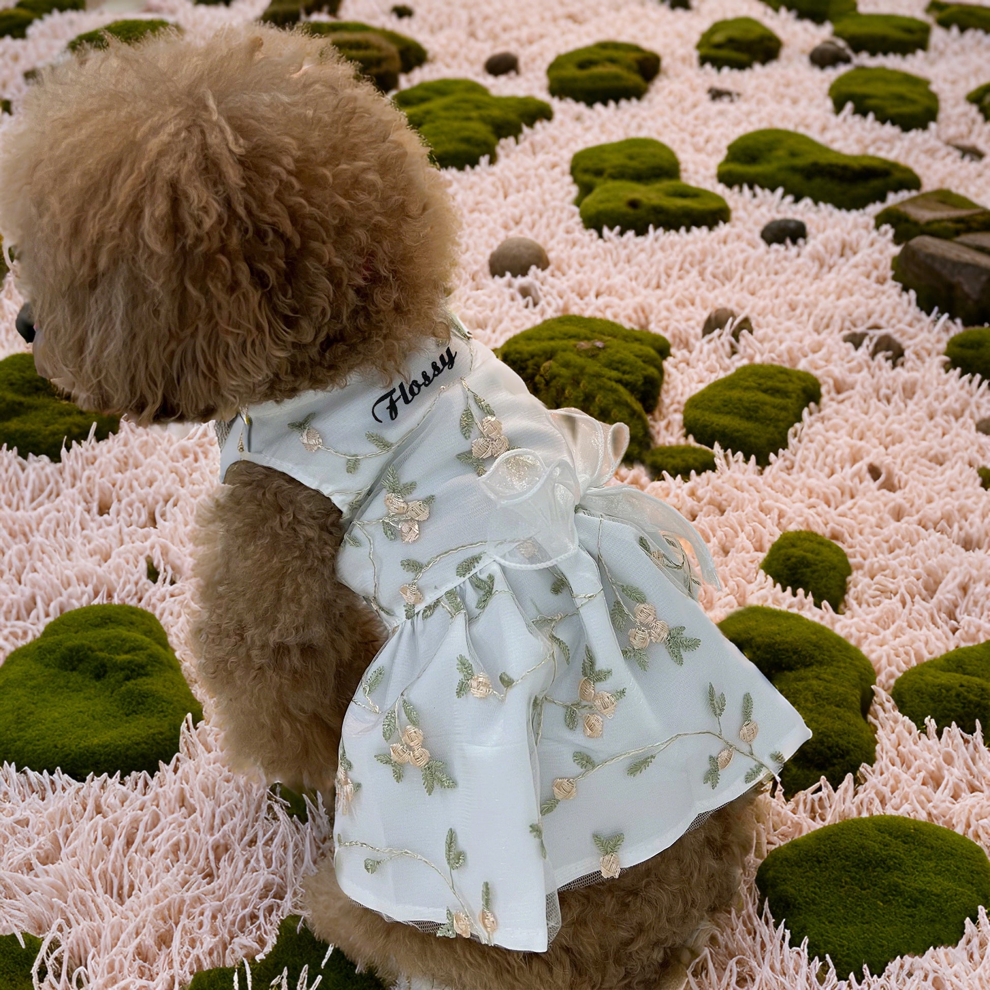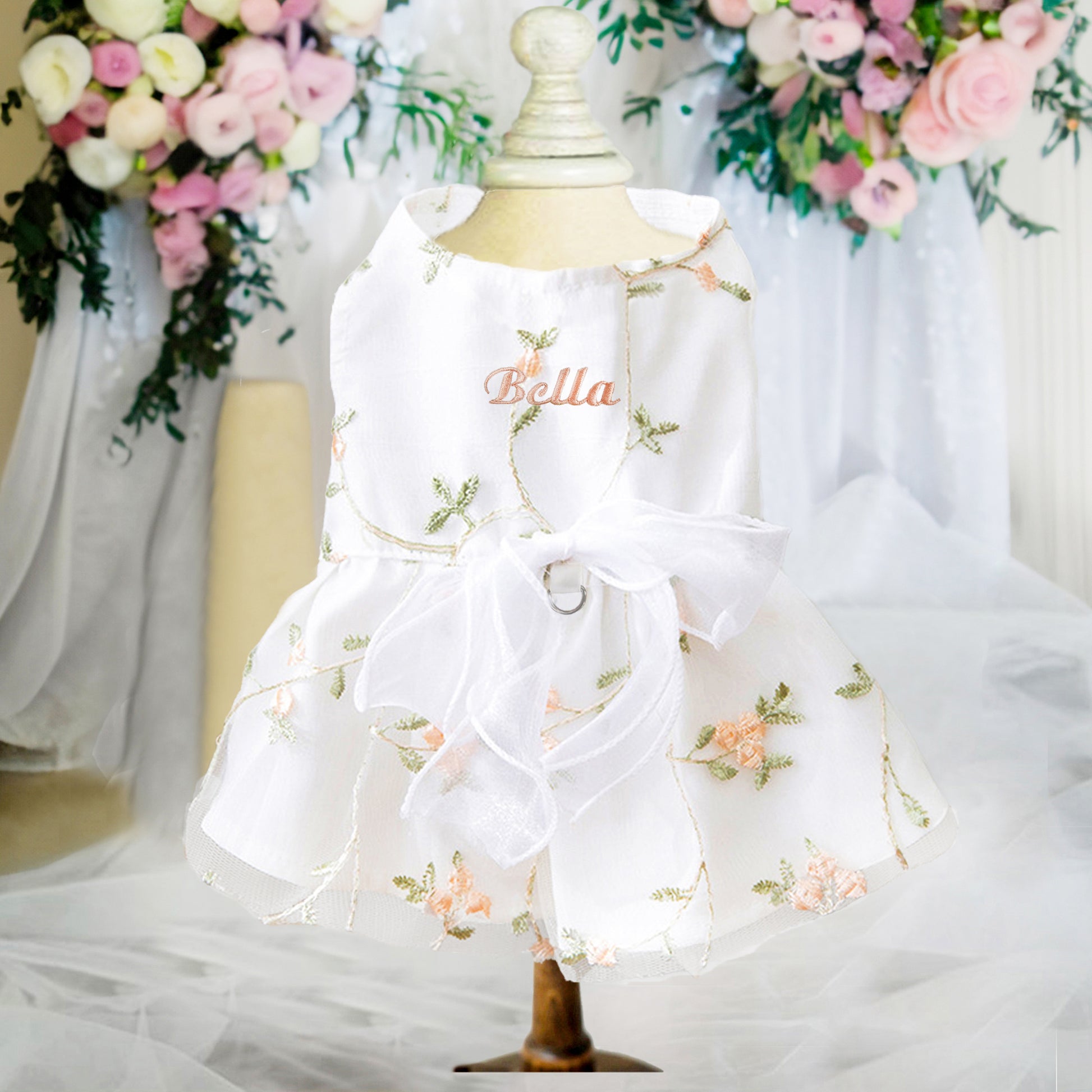 🎀Add a touch of individuality with our Deluxe Custom Embroidered Name option. Each Luxury Custom Pet Dress can be personalized to include your pet's name, crafted with meticulous attention to detail, making it a unique keepsake for years to come.