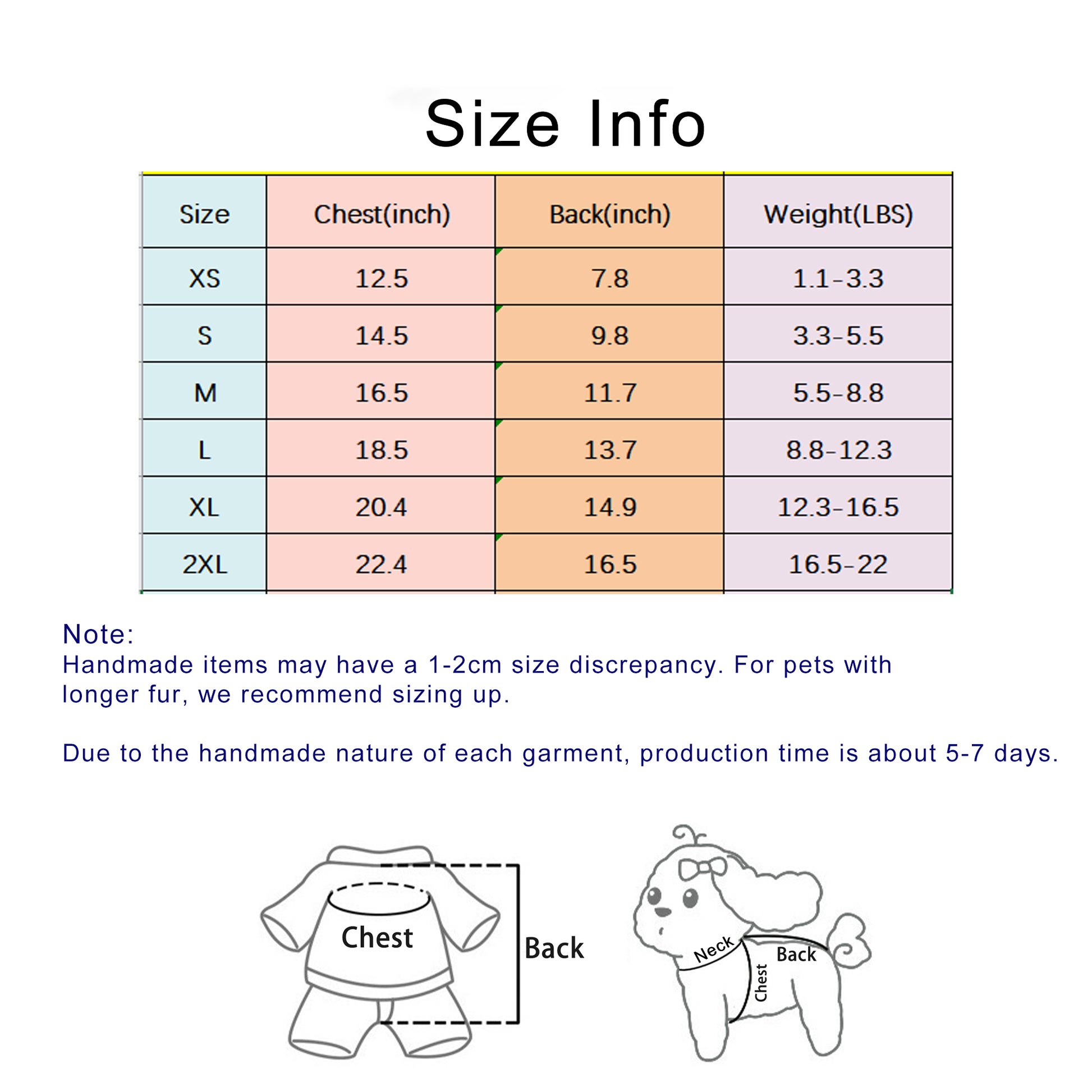 Super happy with this product. I checked in prior to when I needed the item to verify the time frame and if an adjustment could be made. Seller was super quick with responses and very accommodating. Luna my old baby puppy turned 15 on 9/17 & got her dress just in time. She is about 13 pounds and a little wide so I went with a Large per the measurements. I’m hoping to have better pics this weekend but I’m so happy with the details and fluff of this dress. Thank you so much for making a perfect Quince dress for Luna.
