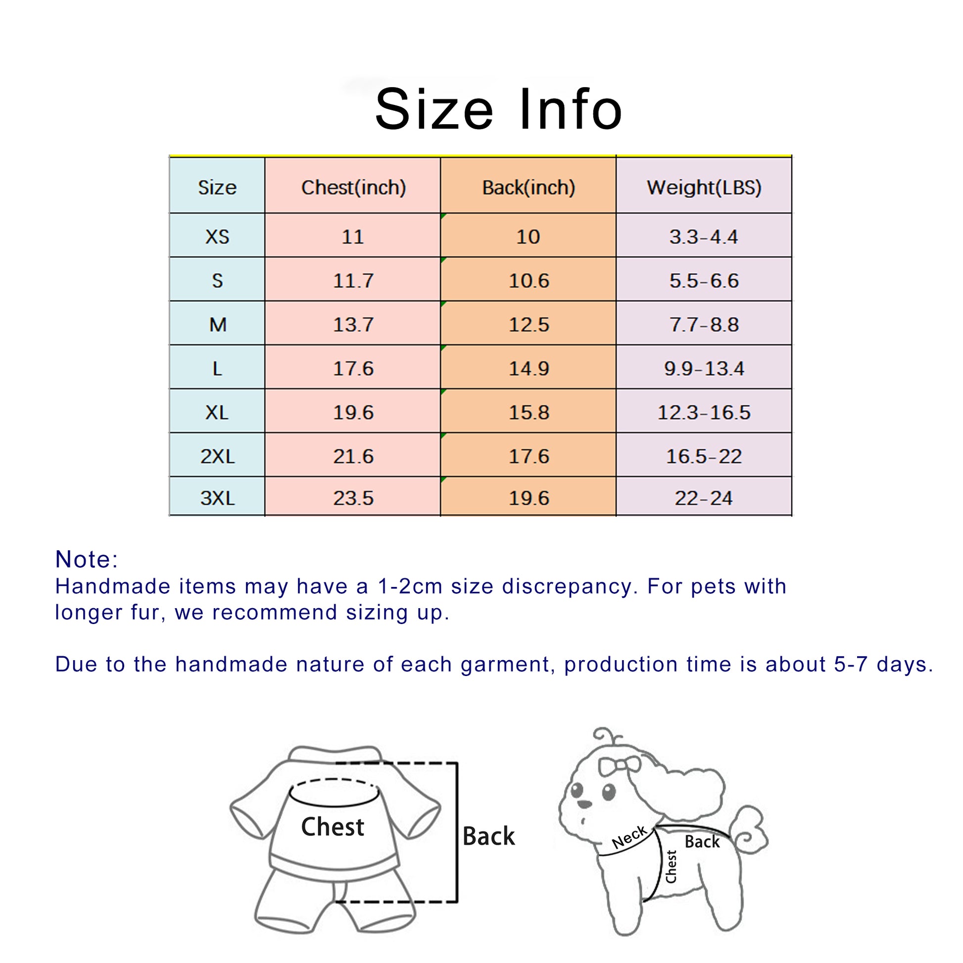 Super happy with this product. I checked in prior to when I needed the item to verify the time frame and if an adjustment could be made. Seller was super quick with responses and very accommodating. Luna my old baby puppy turned 15 on 9/17 & got her dress just in time. She is about 13 pounds and a little wide so I went with a Large per the measurements. I’m hoping to have better pics this weekend but I’m so happy with the details and fluff of this dress. Thank you so much for making a perfect Quince dress for Luna.