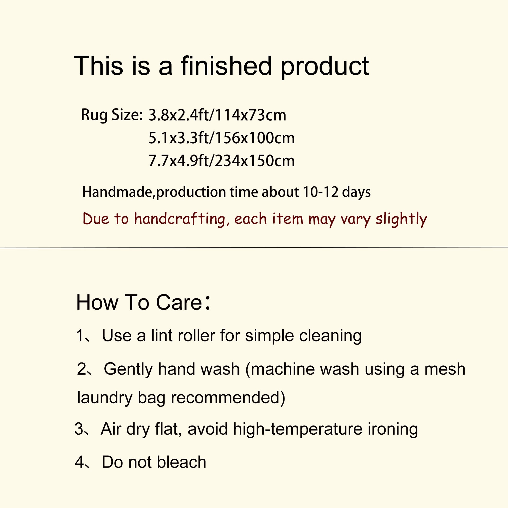 The seller let me know every step of the process, and it arrived super fast once the rug was finished! I'm so happy with it! Thank you so so much!