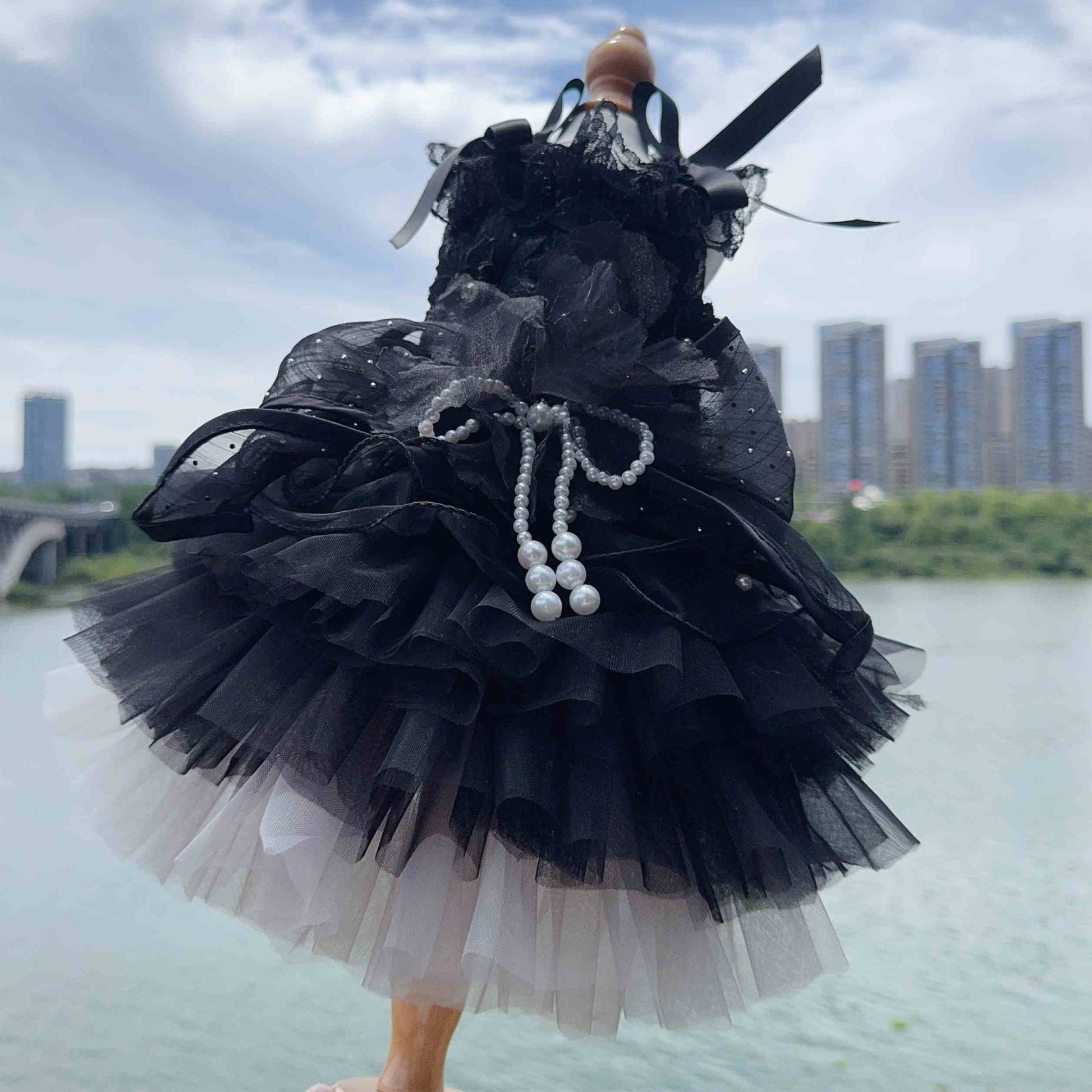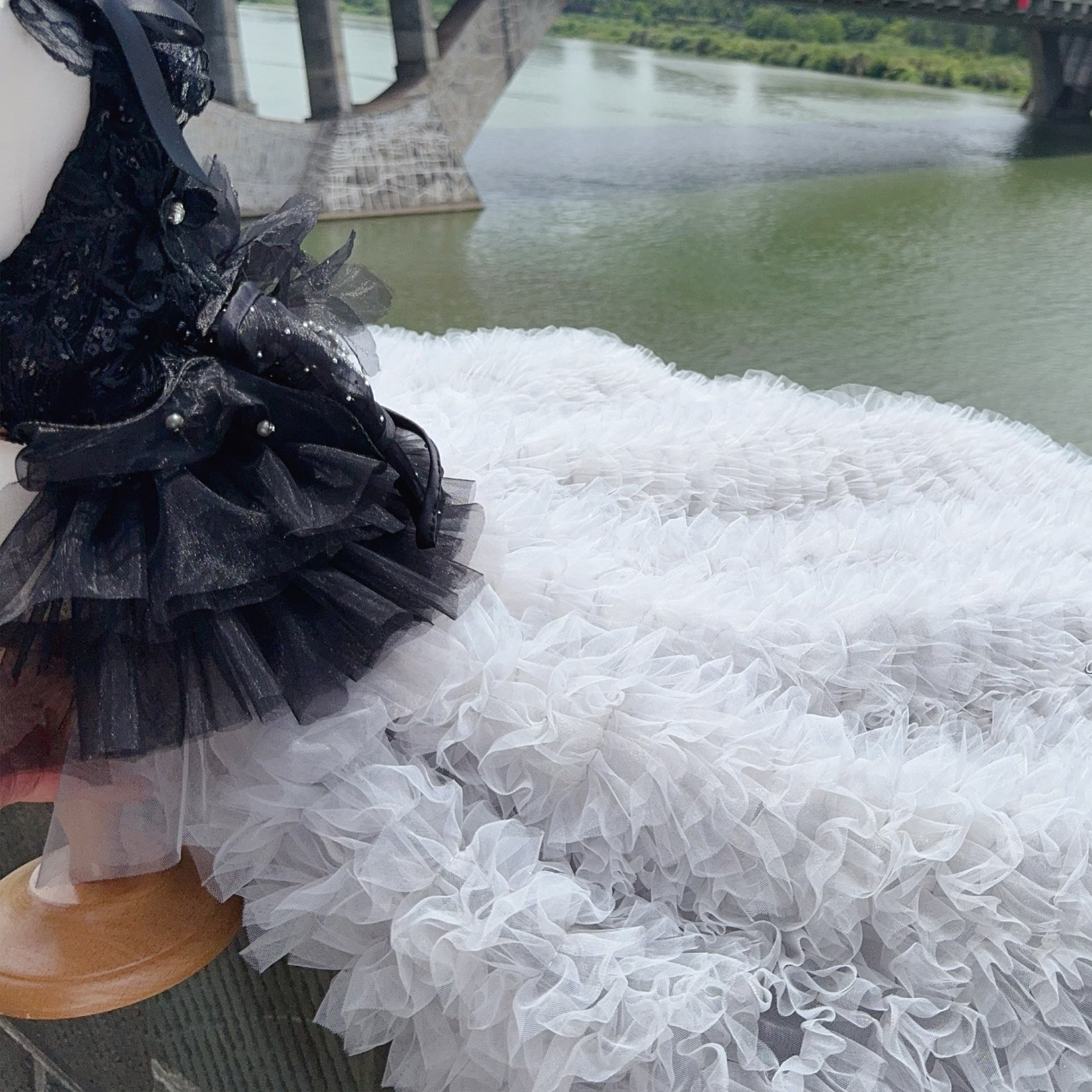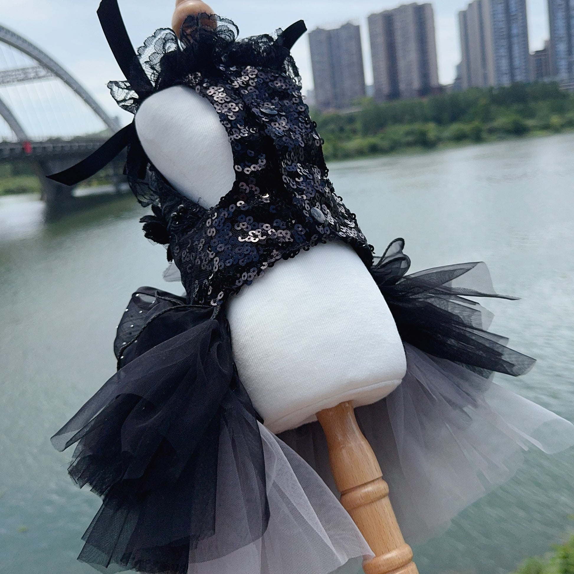 Detachable Black Gray Lace & Sequin Puffy Cake Dress for Dogs/Cats